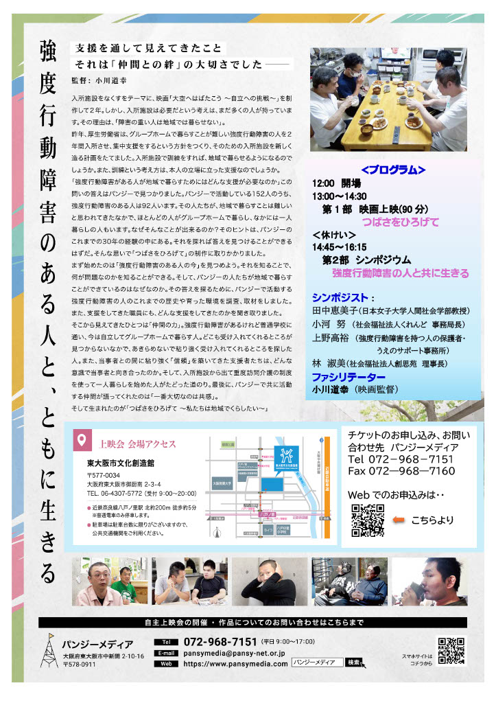 上映後は、専門家や保護者らを招いたシンポジウムで「強度行動障害の人と共に生きること」について考えます。